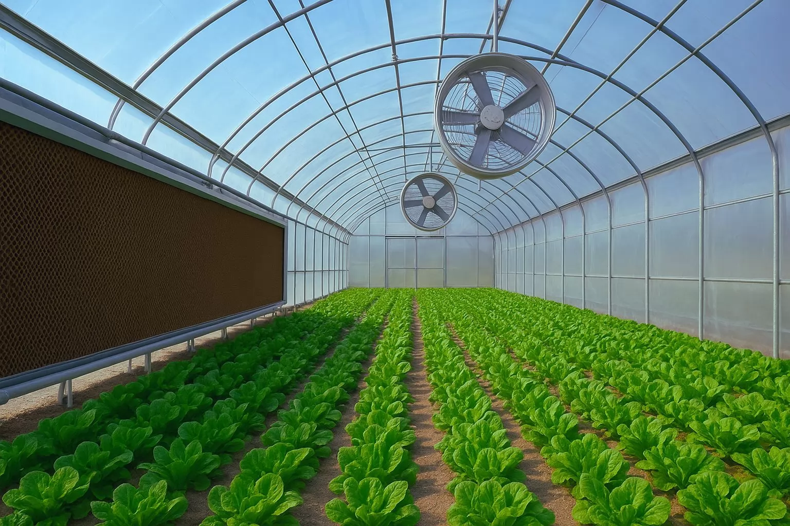 • Fanlar (karşı tarafa yerleştirilmiş) bu soğuk havayı içeri çeker ve seranın içine dağıtır.